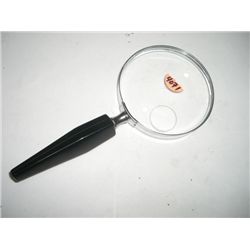 VINTAGE MAGNIFIER WITH METAL RIM AND BLACK HANDLE!! MAGNIFIER CAME OUT OF SAFE!! ***Coin, Currency & All Items Listed in this auction - Grades, ...