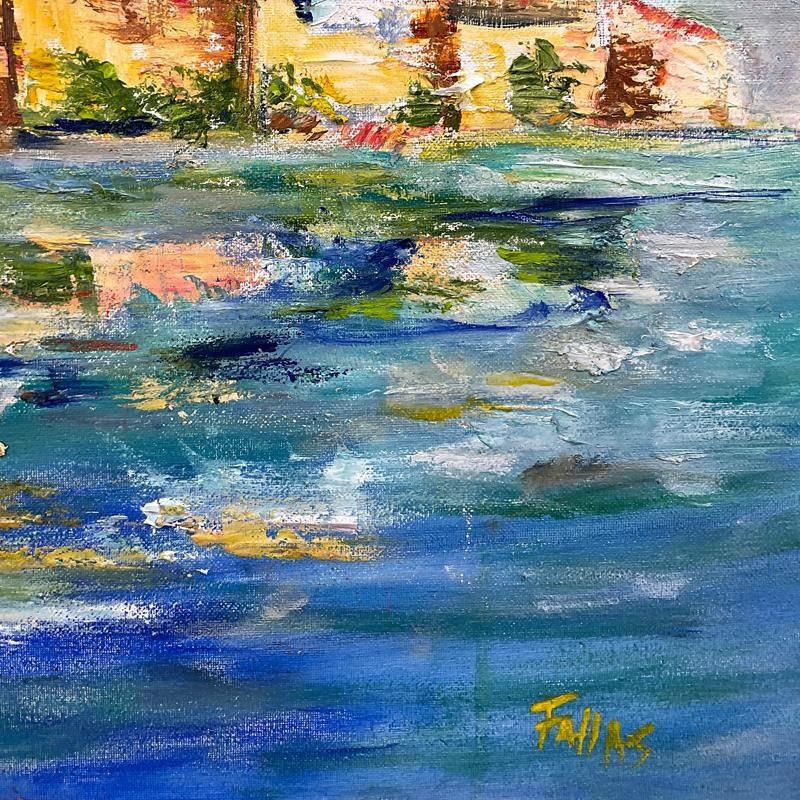 "Safe Harbor" is an original oil painting on canvas by Elliot Fallas, hand signed by the artist. This piece comes gallery wrapped. Includes Letter of Authenticity. Measures approx. 20" x 16" (image). The sides of the canvas are painted and it can be hung