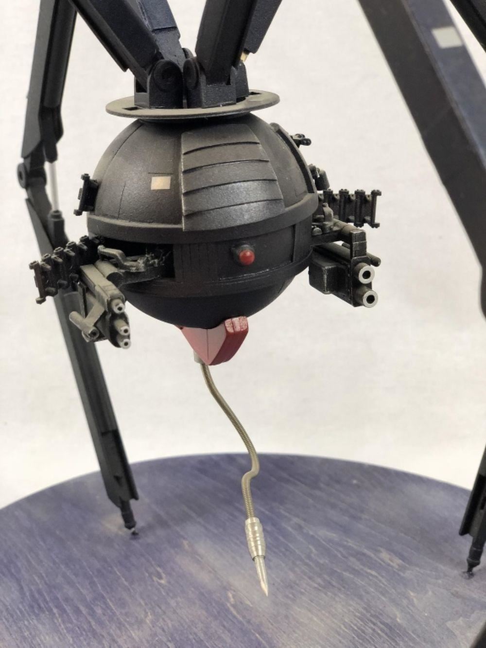Maquette is made of wood and model parts and measures 11 inches tall on a base that's 14.5 by 11.5.