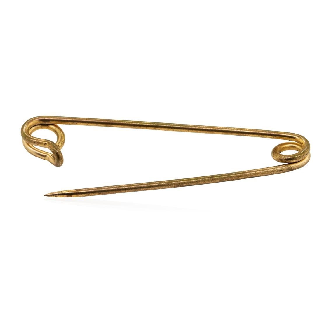 One gold plated safety pin weighing 1.4 grams.