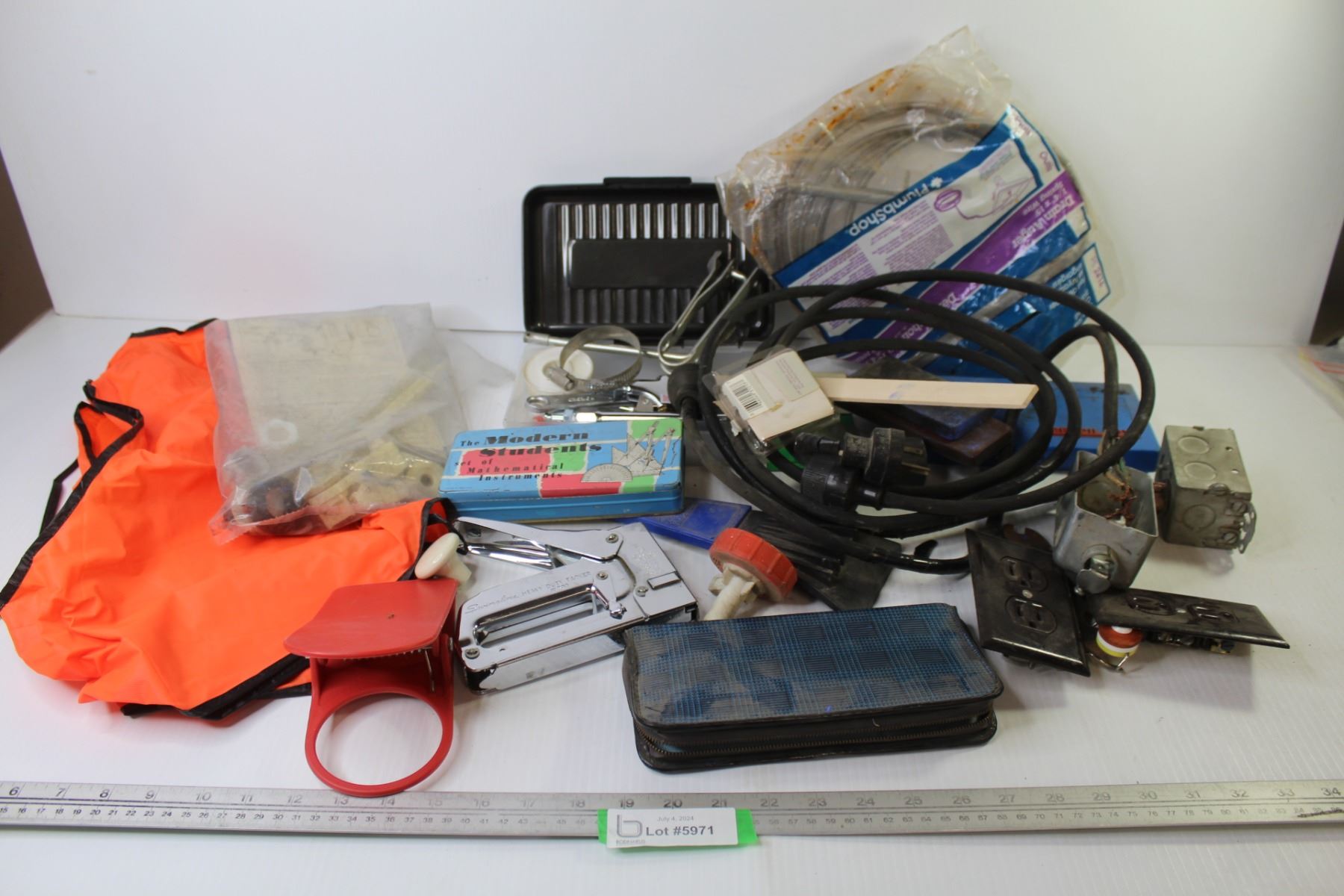 Safety Vest - Electrical Items - Drain Auger - Mathematical Instruments - Stapler - Misc. Items