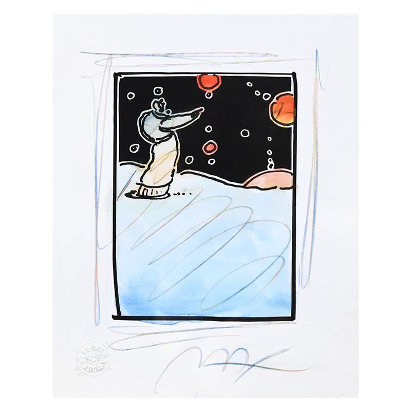 "Sage" is a one-of-a-kind mixed media on paper, hand signed by Peter Max. Includes Certificate of Authenticity from Peter Max Studios. This piece comes custom framed. Measures approx. 16.5" x 18.5" (with frame), 7" x 9" (image).