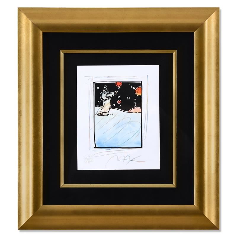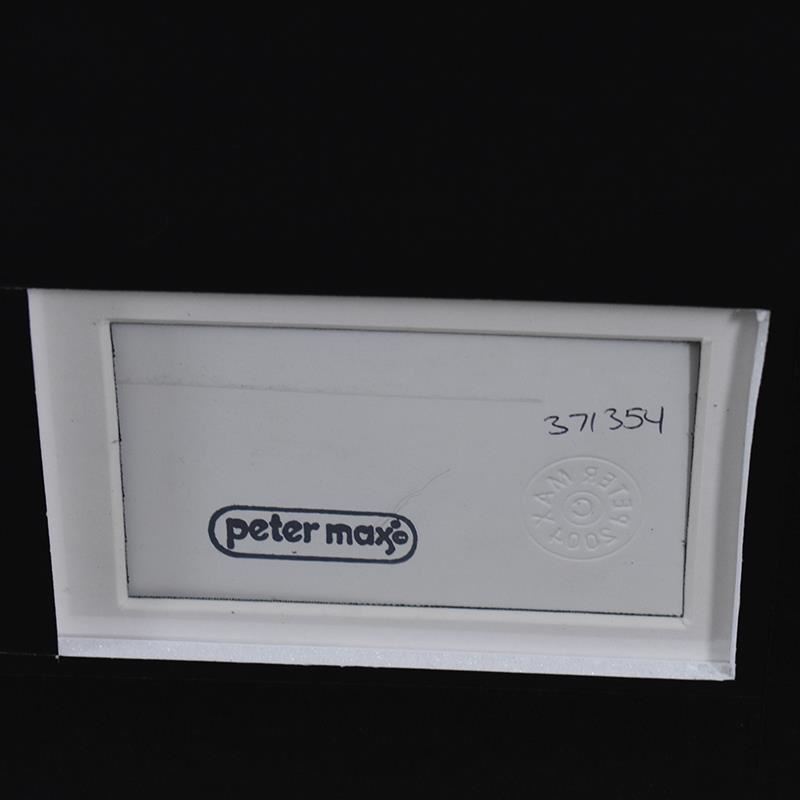"Sage" is a one-of-a-kind mixed media on paper, hand signed by Peter Max. Includes Certificate of Authenticity from Peter Max Studios. This piece comes custom framed. Measures approx. 16.5" x 18.5" (with frame), 7" x 9" (image).