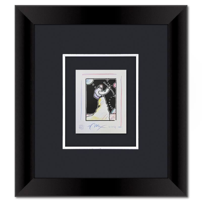 "Sage with Cane" is a one-of-a-kind mixed media on paper, hand signed by Peter Max. The piece comes custom framed with a backside cutout to display Peter Max Studio registration number 339912 certifying authenticity. Measures approximately 23" x 21" (frame), 9" x 7" (image). This item requires special handling and may have a longer than usual turnaround.