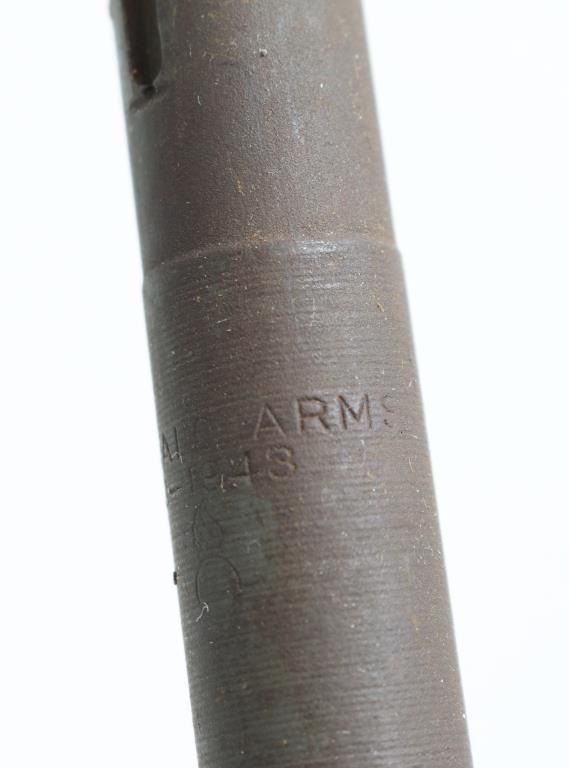 SN: 3295776 Stripped receiver with stripped barrel only, no other parts. Barrel marked "BUFFALO ARMS 9-1943" over flaming bomb. Appears refinished, with thick brownish gray parkerizing. Markings are generally good and readable. Bore appears good to very good condition, bright. Condition is NRA Very Good (as refinished) ***Barreled Receiver Only*** *** C&R Firearm ***