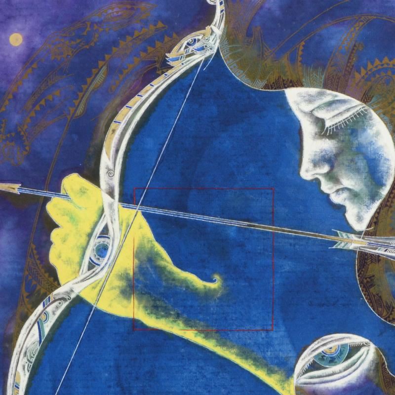 The zodiac is a phenomenological study, formed by coordination between 12 specific constellations in space and birth of one specific human being in time, contrasting 12 signs that guide the meditation of love, fate and purpose of one's life. "Sagittarius (11/23 - 12/20)" is a limited edition giclee on paper by talented Chinese artist Lu Hong, numbered and hand signed by the artist! Measures approx. 24" x 24" (with border), 20" x 20" (image).