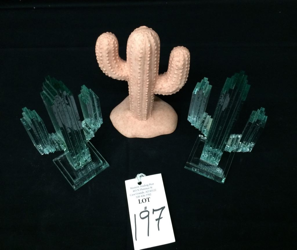 You get 3 saguaro cactus items for 1 money in this lot! There are two “glass” cactus and one ceramic. Items are about 8” tall each. Good vintage condition. Shipping: There will be a $7 handling / packaging fee for shipping this lot. The actual cost of postage will be added on top of that.