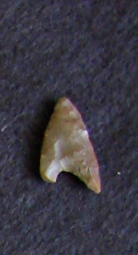 Sahara Neolithic point, measures approx 1 inch. The Sahara wasn't always the desert it is today. It goes through wet and dry phases lasting thousands of years, with shorter phases in between. There were three races of people who inhabited the Neolithic Sahara. Some were of caucasian stock who came from the East through what is now Egypt, and possibly from the North across the water from what is now Spain. Others were dark-skinned Africans of negroid stock who entered the Sahara from the South. And from the Mediterranean coast of North Africa came the mechtoids who were neither caucasoid nor negroid, but probably of Aterian descent. Left behind, from these early civilizations is a treasure trove of stone tools, weapons, rock art, pottery, pipes, beads, bracelets, metals, glass, spindle whorls ? relics from daily life as well as fossils, shark's teeth, shells and traces of marine life. MWF2249F