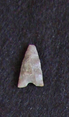Sahara Neolithic point, measures approx 1 inch. The Sahara wasn't always the desert it is today. It goes through wet and dry phases lasting thousands of years, with shorter phases in between. There were three races of people who inhabited the Neolithic Sahara. Some were of caucasian stock who came from the East through what is now Egypt, and possibly from the North across the water from what is now Spain. Others were dark-skinned Africans of negroid stock who entered the Sahara from the South. And from the Mediterranean coast of North Africa came the mechtoids who were neither caucasoid nor negroid, but probably of Aterian descent. Left behind, from these early civilizations is a treasure trove of stone tools, weapons, rock art, pottery, pipes, beads, bracelets, metals, glass, spindle whorls ? relics from daily life as well as fossils, shark's teeth, shells and traces of marine life. MWF2249B