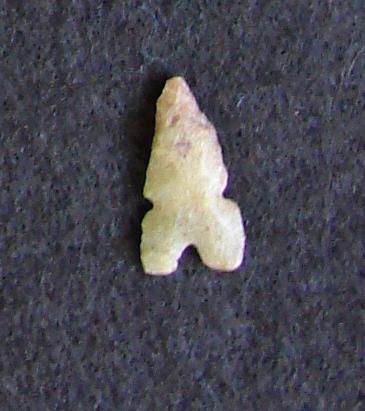 Sahara Neolithic point, measures approx 1 inch. The Sahara wasn't always the desert it is today. It goes through wet and dry phases lasting thousands of years, with shorter phases in between. There were three races of people who inhabited the Neolithic Sahara. Some were of caucasian stock who came from the East through what is now Egypt, and possibly from the North across the water from what is now Spain. Others were dark-skinned Africans of negroid stock who entered the Sahara from the South. And from the Mediterranean coast of North Africa came the mechtoids who were neither caucasoid nor negroid, but probably of Aterian descent. Left behind, from these early civilizations is a treasure trove of stone tools, weapons, rock art, pottery, pipes, beads, bracelets, metals, glass, spindle whorls ? relics from daily life as well as fossils, shark's teeth, shells and traces of marine life.MWF2249W