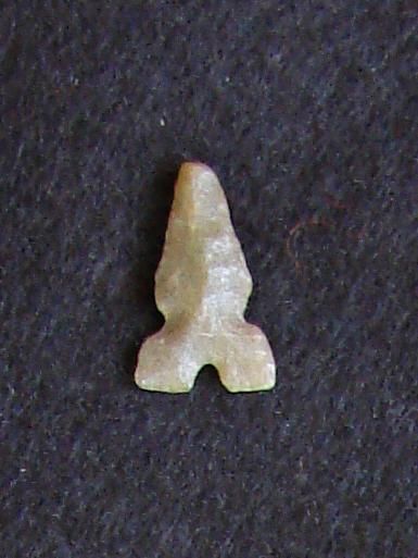 Sahara Neolithic point, measures approx 1 inch. The Sahara wasn't always the desert it is today. It goes through wet and dry phases lasting thousands of years, with shorter phases in between. There were three races of people who inhabited the Neolithic Sahara. Some were of caucasian stock who came from the East through what is now Egypt, and possibly from the North across the water from what is now Spain. Others were dark-skinned Africans of negroid stock who entered the Sahara from the South. And from the Mediterranean coast of North Africa came the mechtoids who were neither caucasoid nor negroid, but probably of Aterian descent. Left behind, from these early civilizations is a treasure trove of stone tools, weapons, rock art, pottery, pipes, beads, bracelets, metals, glass, spindle whorls ? relics from daily life as well as fossils, shark's teeth, shells and traces of marine life. MWF2249C