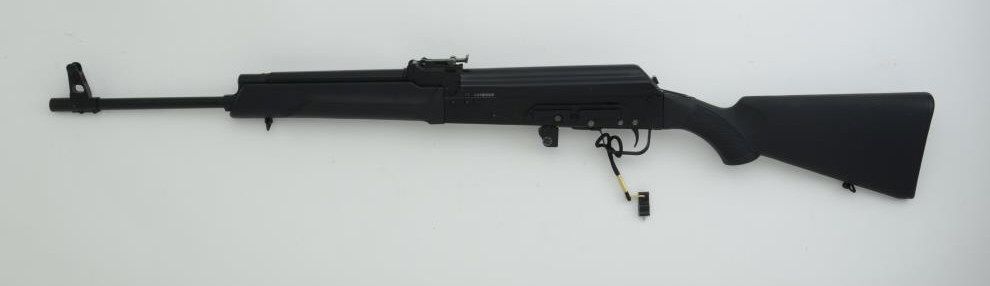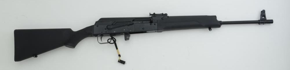 Saiga rifle by Izhmash with magazine block, 7.62mm cal., 20” barrel, mat black finish, composite stock, #1059002 in overall fine condition showing little use. Est.: $200-$400.