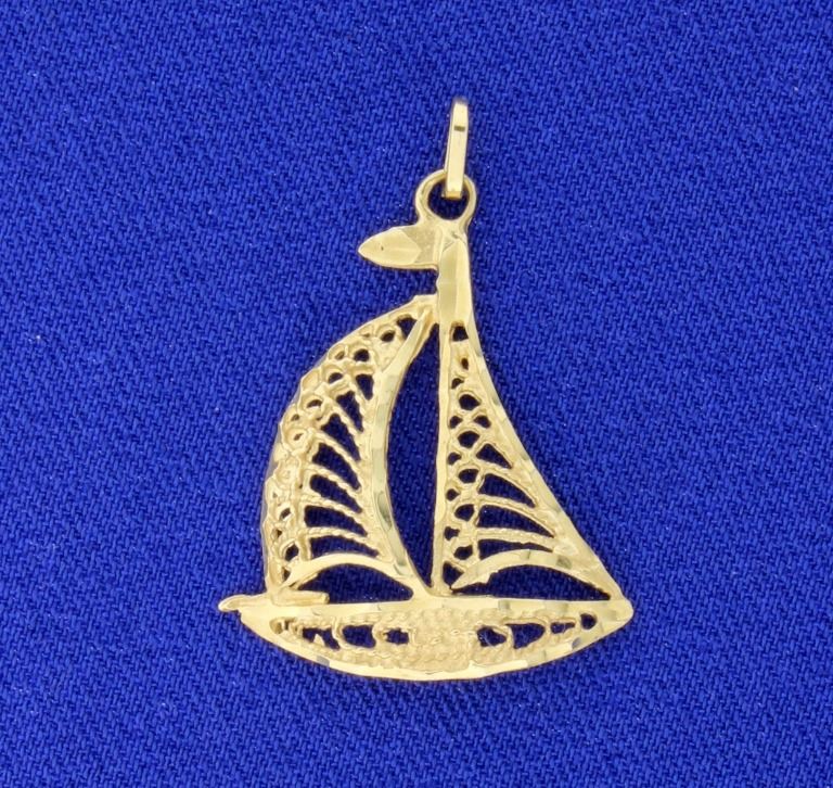 This pendant is 14K yellow gold and is 1 inch long. It has great detail! 1.4g