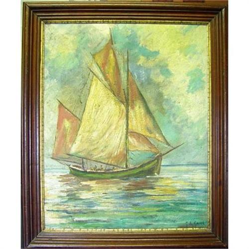 This is a very cheerful painting- great for someone who loves sailing. Pre 1900's. There is a signature in the right hand corner but it is difficult to read.