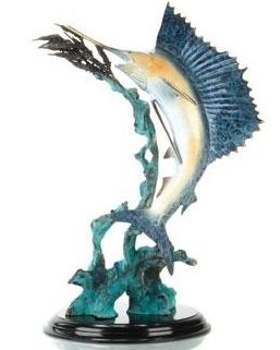 Sailfish Bronze Sculpture - 12"H 7.5"W 4.5 "D - Great Attention To Detail - Beautiful Finish - Lost Wax Cast