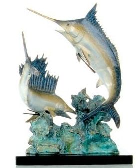 Sailfish & Marlin Bronze Sculpture - 18.5"H 12.5"W 14 "D - Great Attention To Detail - Beautiful Finish - Lost Wax Cast