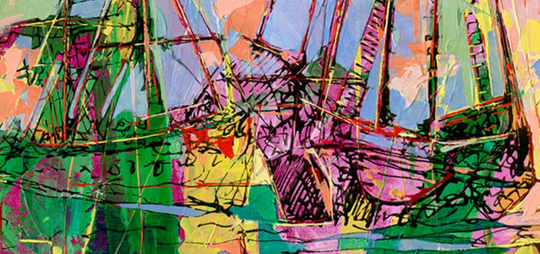 Bright and Colorful original on canvas. Hand signed byWolfson. This artwork comes stretched. Art 24x30