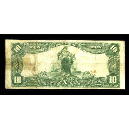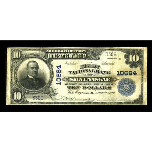 <B>Saint Ansgar, IA</B></I> - $10 1902 Plain Back Fr. 631 <B>The First NB</B></I> Ch. # 10684<BR> The census shows just eight large examples from this one bank Iowa community, with this note one of that number. <B>Fine, </B></I>but with a repaired split and an old tape stain which is distracting only on the reverse. <BR><BR><b>Shipping:</b> Coins & Currency (<a target="_blank" href="http://www.heritageauctions.com/common/shipping.php">view shipping information</a>)