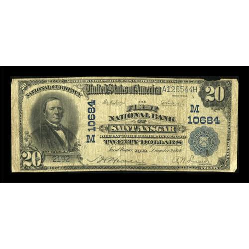 <B>Saint Ansgar, IA</B></I> - $20 1902 Plain Back Fr. 651 <B>The First NB</B></I> Ch. # (M)10684<BR> The signatures remain bold and the paper is whole save for a small piece in the upper margin. <B>Very Good.</B></I><BR><I>From The Kansas City Collection.</B></I><BR><BR><b>Shipping:</b> Coins & Currency (<a target="_blank" href="http://www.heritageauctions.com/common/shipping.php">view shipping information</a>)