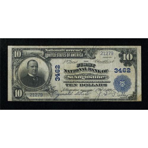 <B>Saint Augustine, FL</B></I> - $10 1902 Plain Back Fr. 625 <B>The First NB</B></I> Ch. # 3462<BR> This St. Johns County community is the oldest continuously occupied European settlement in the United States. This solid <B>Fine</B></I> example is from the earliest chartered of the two banks to issue from here and has very nice signatures.<BR><BR><b>Shipping:</b> Coins & Currency (<a target="_blank" href="http://www.heritageauctions.com/common/shipping.php">view shipping information</a>)
