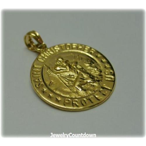 St. Christopher Pendant measures 7/8 Inch tall (including bail) and weighs 2 grams. Made of solid 14 Karat Yellow Gold. <BR><BR> Please note: our merchandise is guaranteed 100% to your satisfaction. If you DON'T LOVE this item, simply return it for a complete refund of your purchase price. BONDED SELLER.<p> * Insurance is included in our Domestic Shipping charges: $6 for first item and $3 for each additional item.