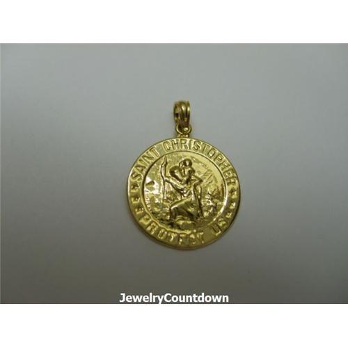 St. Christopher Pendant measures 7/8 Inch tall (including bail) and weighs 2 grams. Made of solid 14 Karat Yellow Gold. <BR><BR> Please note: our merchandise is guaranteed 100% to your satisfaction. If you DON'T LOVE this item, simply return it for a complete refund of your purchase price. BONDED SELLER.<BR><BR>Shipping Charges in the USA: $6 for the first item, $3 for ea. additional; Within Canada/Australia: $25 for the first item, $3 for each additional; Within Europe $45 for the first item, $3 for each additional.