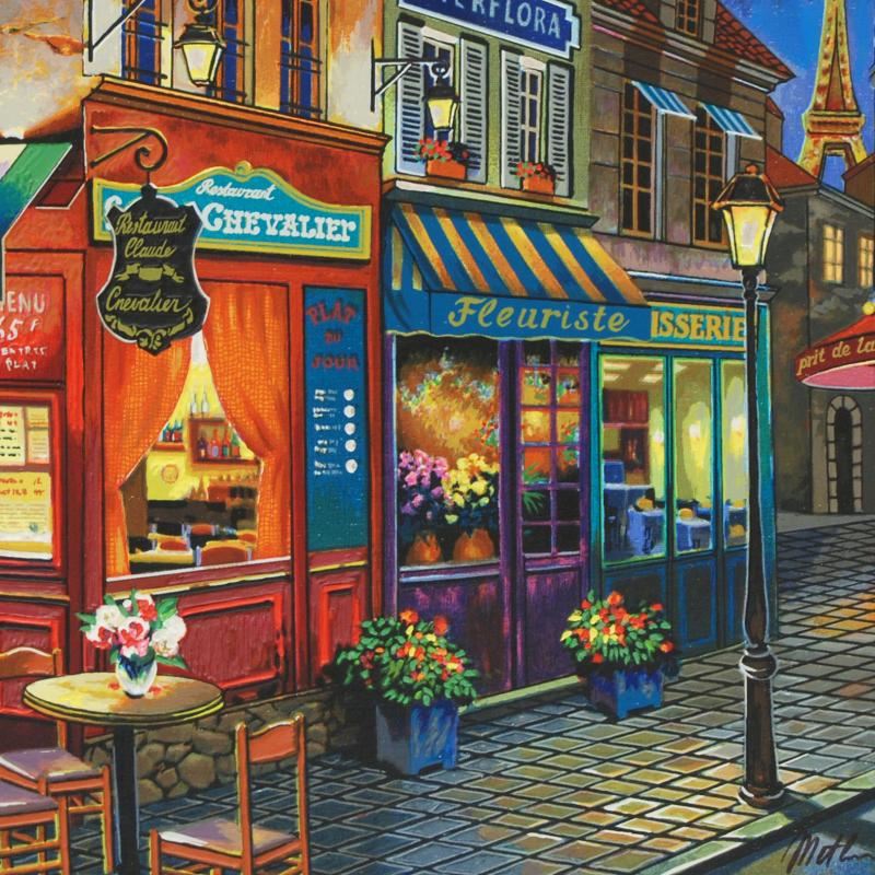 "Saint Denis La Nuit" is a limited edition lithograph on paper by Anatoly Metlan, numbered and hand signed by the artist! Includes Certificate of Authenticity! Measures approx. 25" x 19" (with border), 22.5" x 16.5" (image).