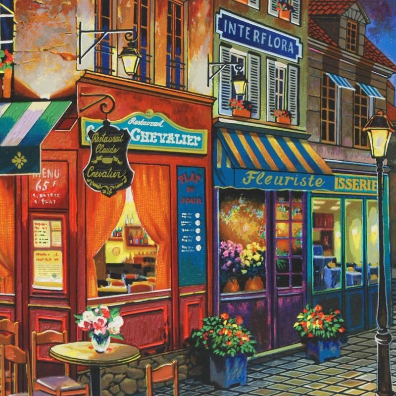 "Saint Denis La Nuit" is a limited edition lithograph on paper by Anatoly Metlan, numbered and hand signed by the artist. Includes Certificate of Authenticity. Measures approx. 25" x 19" (with border), 22.5" x 16.5" (image).