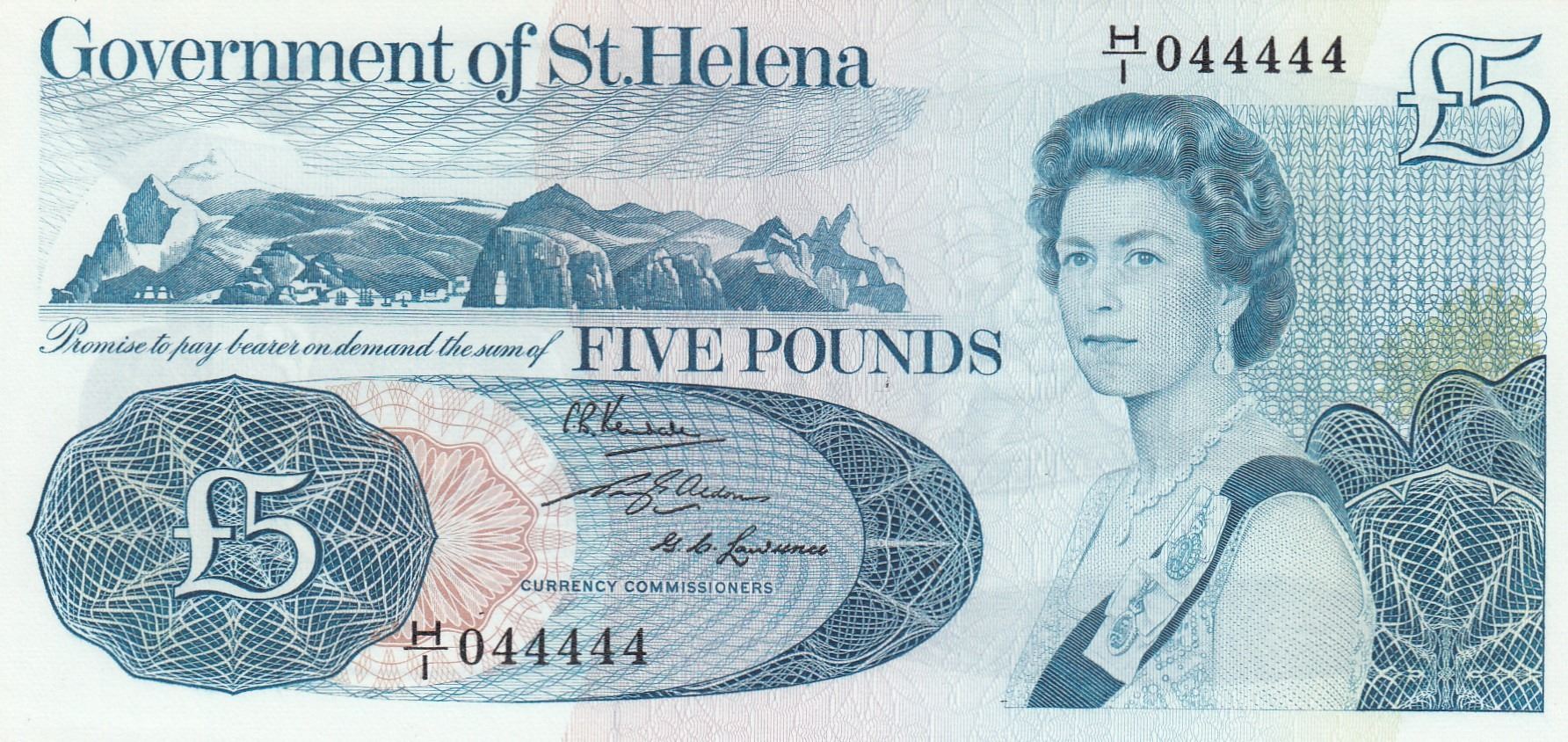 Saint Helena, 5 Pounds, 1976, UNC, p7a, "Nice number"br/Queen Elizabeth II portrait, serial number: H/1 044444
