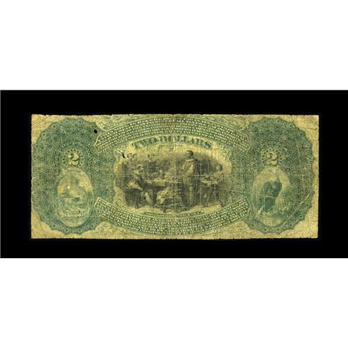 <B>Saint Johnsbury, VT</B></I> - $2 Original Fr. 387 <B>The First NB</B></I> Ch. # 489<BR>This well circulated <B>Very Good</B></I> is just the second First Charter $2 to be confirmed from here. The paper has become a trifle soft from the considerable circulation this note has seen and there is a skinned spot on the face. What this note lacks in eye appeal is well compensated for by its scarcity.<BR><BR><b>Shipping:</b> Coin/Currency (<a target="_blank" href="http://www.heritageauctions.com/common/shipping.php">view shipping information</a>)