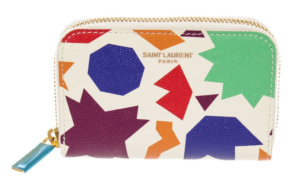 Saint Laurent White Multicolor Leather Small-Shapes Print Compact Zippy Wallet