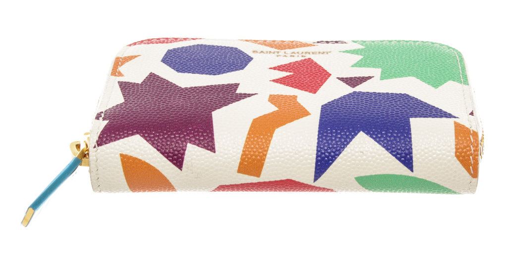 Saint Laurent White Multicolor Leather Small-Shapes Print Compact Zippy Wallet