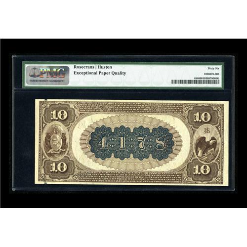 <B>Saint Louis, MO</B></I> - $10 1882 Brown Back Fr. 484 <B>The NB of Commerce</B></I> Ch. # (M)4178<BR>A lovely example perfect for the ultimate type set, as this piece displays spectacular colors, full original embossing, and margins which are more than adequate to easily carry the gem grade. <B>PMG Gem Uncirculated 66 EPQ.</B></I><BR><BR><b>Shipping:</b> Coin/Currency (<a target="_blank" href="http://www.heritageauctions.com/common/shipping.php">view shipping information</a>)