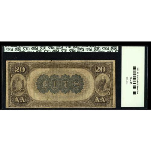 <B>Saint Louis, MO</B></I> - $20 1882 Brown Back Fr. 498 <B>The NB of Commerce</B></I> Ch. # (M)4178<BR>Penned signatures are found on this excellent $20 for type. <B>PCGS Fine 12.</B></I>