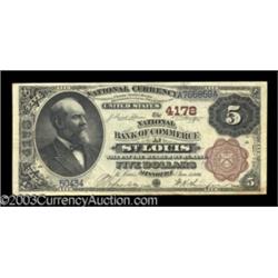 <TABLE cellSpacing=0 cellPadding=0 width="100%" bgColor=#000000 border=0><TBODY> <TR><TD width="100%"><TABLE cellSpacing=1 cellPadding=3 width="100%" border=0><TBODY><TR><TD width="100%" bgColor=#79735c><FONT face=arial color=#ffffff size=3><B>Description</B> </FONT></TD></TR><TR><TD width="100%" bgColor=#ffffff><FONT face=arial size=2><B>Saint Louis, MO</B></I> - $5 1882 Brown Back Fr. 474 <B>The NB of Commerce</B></I> Ch. # 4178<BR>An attractive $5 Brown Back which makes a fine example for type. <B>Very Fine+,</B></I> with a tiny spot of aged paper at the bottom right corner which is barely worthy of mention. (400-500 ) </FONT></TD></TR></TBODY></TABLE></TD></TR></TBODY></TABLE><BR><TABLE cellSpacing=0 cellPadding=0 width="100%" bgColor=#000000 border=0><TBODY><TR> Important notice: Heritage usually auctions material at the rate of 200-250 lots per hour. On some occasions eBay Live bid software or the Internet may not be able to keep up with the pace of the auction. We recommend placing a realistic absentee bid now as insurance to avoid disappointment. Occasionally the auctioneer may eliminate or reject an eBay Live bid, and the auctioneer may also reopen a lot after the close of the eBay live bidding (usually because we missed an audience bid), and may reject your bid even if it shows you as the winning bidder. By bidding via eBay Live, you agree that Heritage may award the lot to another bidder at its sole discretion under the circumstances described above or any other reasonable circumstances. Also please note that all Heritage lots purchased through eBay Live carry a 20% Buyer's Premium. Please make sure you read the Terms and Conditions before you bid.</TR></TBODY></TABLE>