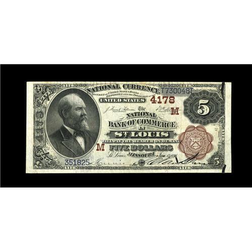 <B>Saint Louis, MO</B></I> - $5 1882 Brown Back Fr. 474 <B>The NB of Commerce</B></I> Ch. # (M)4178<BR>This <B>Very Fine-Extremely Fine</B></I> example is a pleasing mid-grade note for type. Much crispness remains on this attractive piece.<BR><BR><b>Shipping:</b> Coin/Currency (<a target="_blank" href="http://www.heritageauctions.com/common/shipping.php">view shipping information</a>)