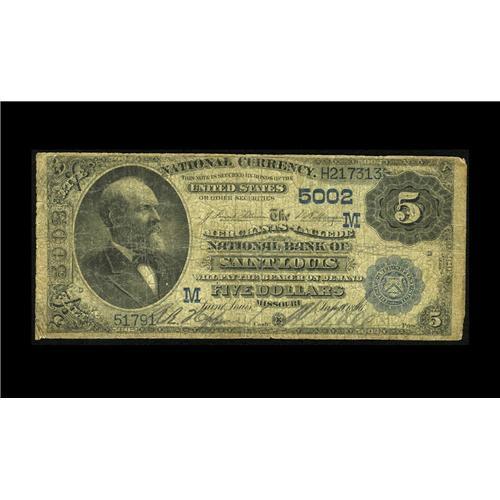 <B>Saint Louis, MO</B></I> - $5 1882 Date Back Fr. 534 <B>The Merchants-Laclede NB</B></I> Ch. # (M)5002<BR>A well circulated <B>Very Good</B></I> Date Back with considerable soiling from a venerable St. Louis financial institution.