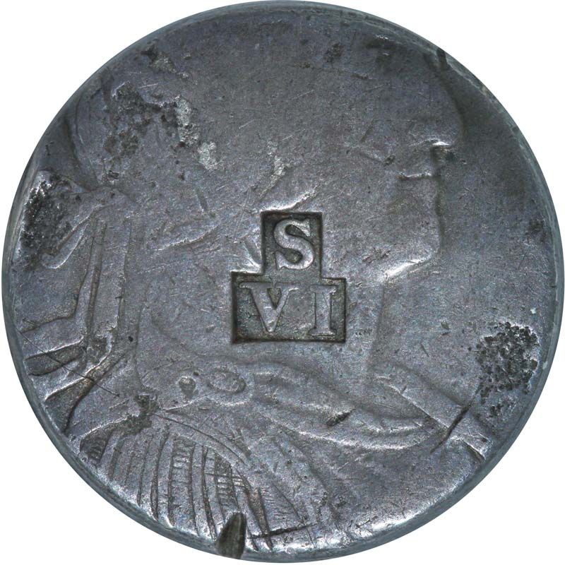 Host coin F18, C/S AU50 - Uncertified. Thematically the forerunner to Australia's Dump (The NSW 1813 15 Pence). Rarely offered.