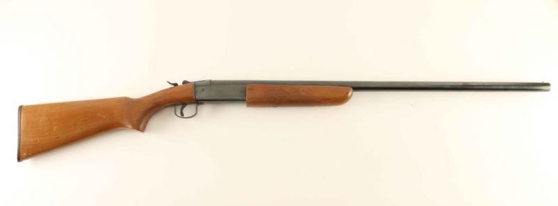 Break-action single shot shotgun chambered for 2 3/4" 20 gauge shells, manufacture in Japan by Sakaba(SKB). Features a blued finish, 28" barrel, brass bead font sight, automatic ejector, smooth trigger, exposed hammer with serrated spur, knurled top lever, smooth wood forend and pistol grip shoulder stock with Ithaca buttplate. Shotgun exhibits approximately 87% of it's bright blued refinish showing little wear, some scattered light surface rust and a few dings in the metal under the finish. Action performs well, the bore appears good but is dirty and the wood stocks are good with worn finish & blemishes. Condition is NRA Fair. ***C&R Firearm***
