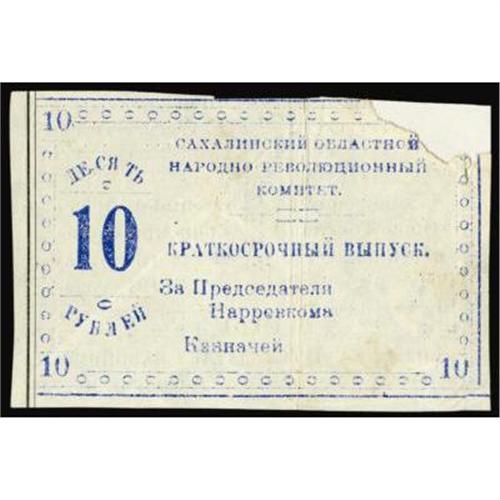 <style type="text/css"> body, td, th { font-family: Arial, Helvetica, sans-serif; font-size: 12px; color: #482424; margin: 0px; padding: 0px; } #header { background-image: url(http://www.bowersandmerena.com/ebay/images/template_v3_01.gif); clear: both; background-color: #590303; border-top-width: 2px; border-top-style: solid; border-top-color: #B38C4F; } #header #header_wrapper { height: 75px; clear: both; width: 800px; margin-right: auto; margin-left: auto; background-image: url(http://www.bowersandmerena.com/ebay/images/template_v3_03.gif); background-repeat: no-repeat; background-position: right; color: #F3EDCC; } #header #header_wrapper #header_logo { float: left; height: 75px; width: 444px; background-image: url(http://www.bowersandmerena.com/ebay/images/template_v3_02.gif); background-repeat: no-repeat; font-size: 10px; text-transform: capitalize; color: #B38C4F; } #header #header_wrapper #header_right { float: left; height: 75px; width: 356px; text-align: right; } #header #header_wrapper #header_right #headerLoginBtn { margin-bottom: 30px; } #header #header_wrapper #header_right input#txtSearch { color: #B49056; border: 1px solid #B49056; width: 175px; padding-top: 3px; padding-right: 3px; padding-bottom: 4px; padding-left: 3px; } #nav { height: 37px; background-image: url(http://www.bowersandmerena.com/ebay/images/template_v3_05.gif); clear: both; } #nav #nav_wrapper { height: 35px; width: 800px; margin-right: auto; margin-left: auto; border-left-width: 1px; border-left-style: solid; border-left-color: #B38C4F; } #nav #nav_wrapper a { padding-right: 15px; padding-left: 15px; border-right-width: 1px; border-right-style: solid; border-right-color: #B38C4F; height: 25px; padding-top: 10px; display: block; float: left; text-decoration: none; font-weight: bold; color: #5D0303; } #nav #nav_wrapper a:hover { color: #B38C4F; } #nav #nav_wrapper #search { float: right; padding-top: 7px; } #nav #nav_wrapper #search #txtSearch { font-family: Arial, Helvetica, sans-serif; font-size: 10px; text-transform: uppercase; color: #D2AE75; border: 1px solid #B38C4F; padding: 3px; } #content_bgd { background-image: url(http://www.bowersandmerena.com/ebay/images/template_v3_09.gif); background-repeat: repeat-y; background-position: center; padding-top: 15px; padding-bottom: 15px; background-color: #FBFBDB; } #content_wrapper { clear: both; height: auto; width: 800px; margin-right: auto; margin-left: auto; } .LotDetailWhite { line-height:normal; font-size:13px; font-family: arial,helvetica,sans-serif; color: White; font-weight: bold; } .LotDetailInformation { line-height:normal; font-size: 13px; font-family: arial,helvetica,sans-serif; } .LotDetailMessage { line-height:normal; font-size: 13px; font-family: arial,helvetica,sans-serif; color: red; } } tr.HeaderAuctionTitle td { color: #000000; font-weight: bold; padding: 2px; background-image: url(http://www.bowersandmerena.com/ebay/images/template_v3_05.gif); background-repeat: repeat-x; border-bottom-width: 1px; border-bottom-style: solid; border-bottom-color: #B38C4F; } table.AuctionSummary a, table.AuctionSummary a:link, table.AuctionSummary a:visited { color: #0000FF; text-decoration: none; } } td.tableHeaderLeft { border-left-width: 1px; border-left-style: solid; border-left-color: #B38C4F; } td.tableHeaderRight { border-right-width: 1px; border-right-style: solid; border-right-color: #B38C4F; } td.tableCellMiddle { border-left-width: 1px; border-left-style: solid; border-left-color: #B38C4F; border-right-width: 1px; border-right-style: solid; border-right-color: #B38C4F; padding: 5px; } tr.footer td { border-top-width: 1px; border-top-style: solid; border-top-color: #B38C4F; } </style> </head> <body> <div id="header"> <div id="header_wrapper"> <div id="header_logo"> </div> <div id="header_right"> </div> </div> </div> <div id="nav"> <div id="nav_wrapper"> <a href="http://www.bowersandmerena.com">Our eBayLive Auctions</a> <a href="#PaymentInfo">Payment Information</a> <a href="#ShippingInfo">Shipping Information</a> <a href="#About">About Bowers and Merena</a> </div> </div> <div id="content_bgd"> <div id="content_wrapper"> <table width="100%" border="0" cellpadding="5" cellspacing="0" class="AuctionSummary"> <tbody> <tr class="HeaderAuctionTitle" style="height: 25px;"> <td align="left" class="tableHeaderLeft" > </td> <td align="center" class="tableHeaderRight"> <span style="font-size: large;">Lot #2309. East Siberia. Sakhalin Provincial National Revolutionary Committee, 1920 Bons Issue. </span> </td> </tr> <tr> <td colspan="3" class="tableCellMiddle"> 1920, 10 Rubles, P-S1279. Note would have been in XF condition except for missing upper left corner. Rare note in collectible condition.