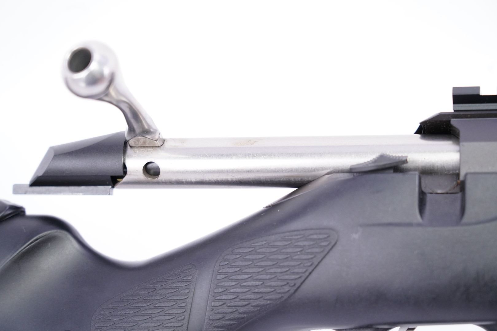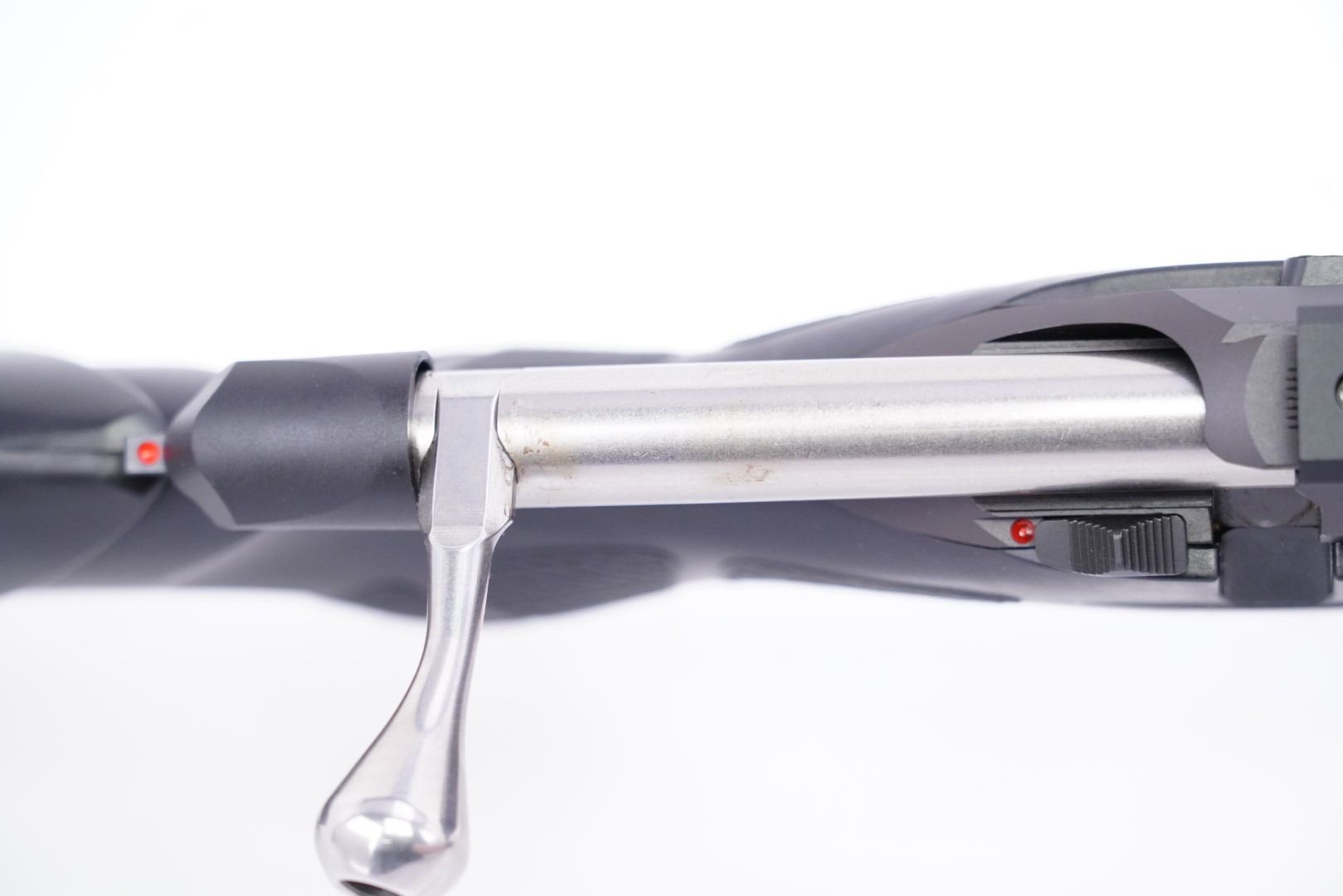 Overall Condition: This rifle retains about 95% of its blue finish. There are handling and storage marks present. The silver colored bolt handle adds a nice contrast to the blue finish. The rifle rates in about Fine Plus overall condtion.