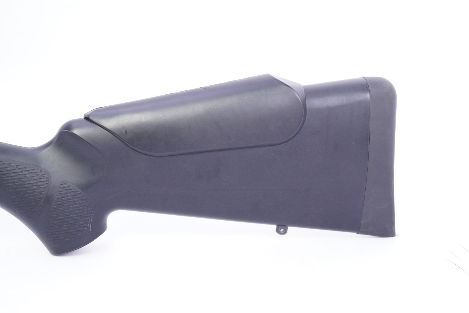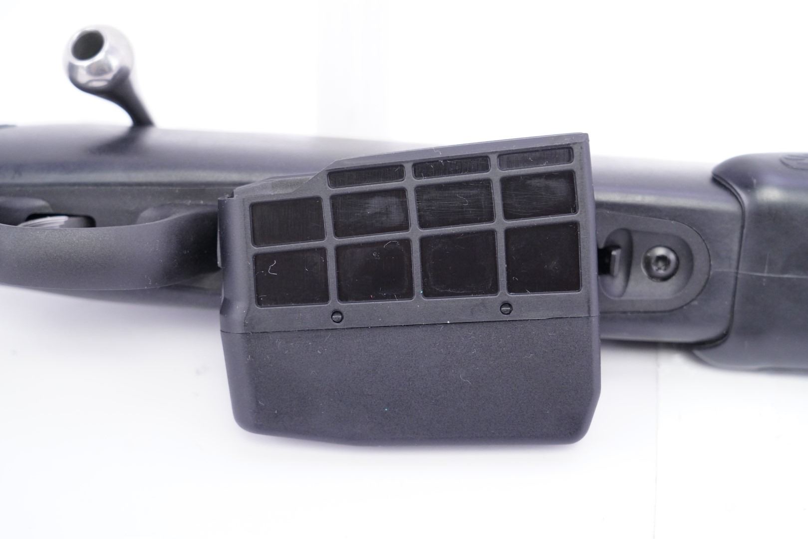 Stock Configuration & Condition: The one piece polymer stock features textured pistol grip, forend, and left and right side chiek pieces. The stock shows light handling and storage marks with a few dings and scuffs but nothing major. The LOP measures 13 3/4" from the front of th trigger to he back of the rubber buttpad. The stock rates in about Fine plus overall condition.