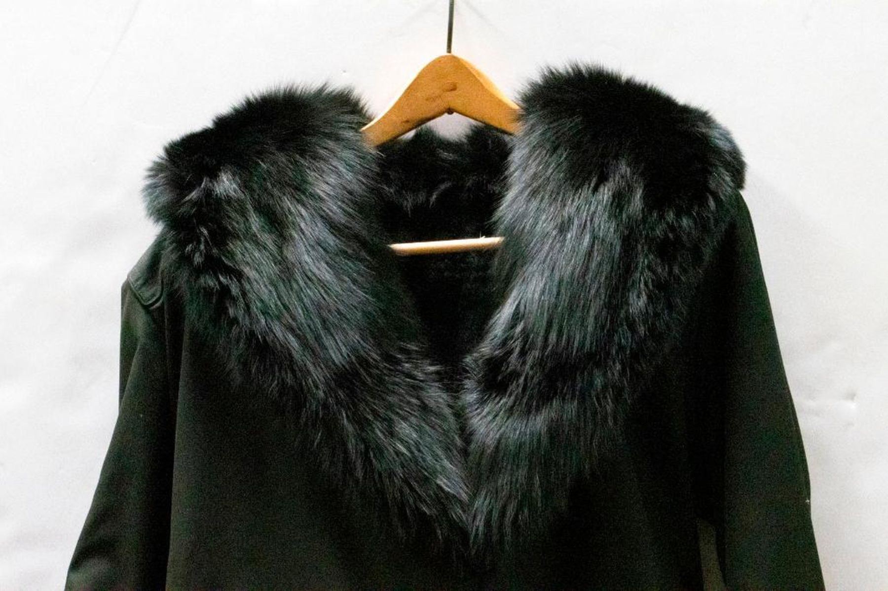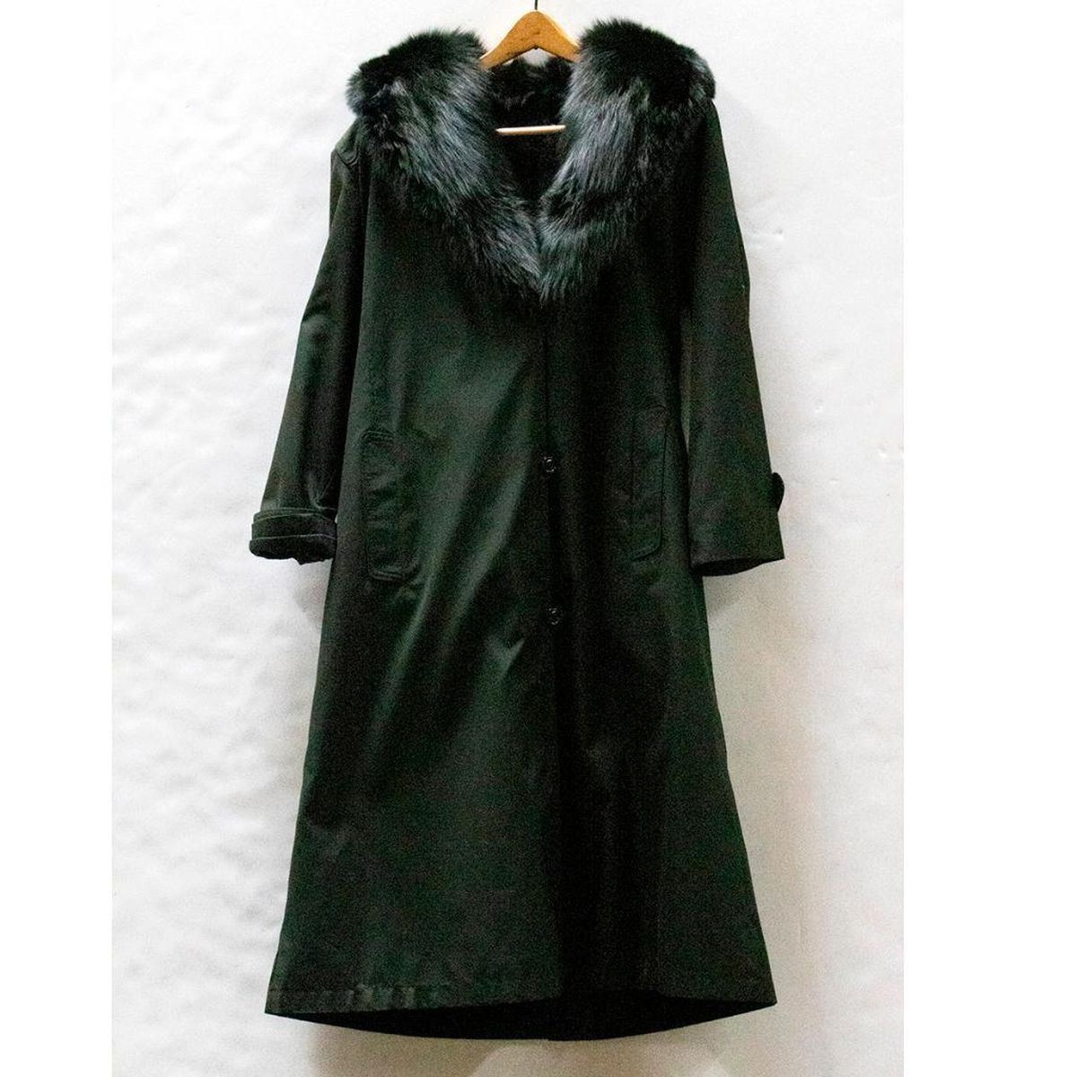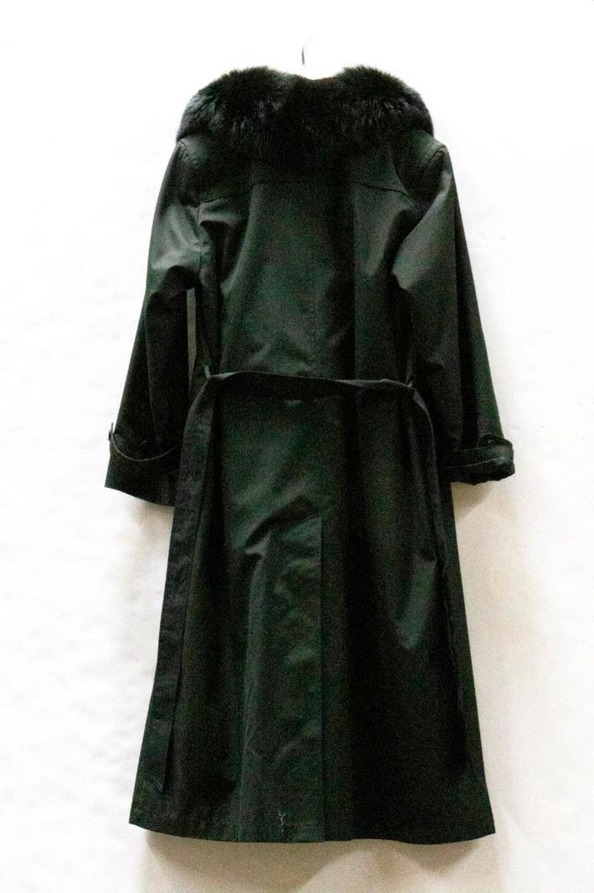 rain coat with removable lining with fur collar; size 14