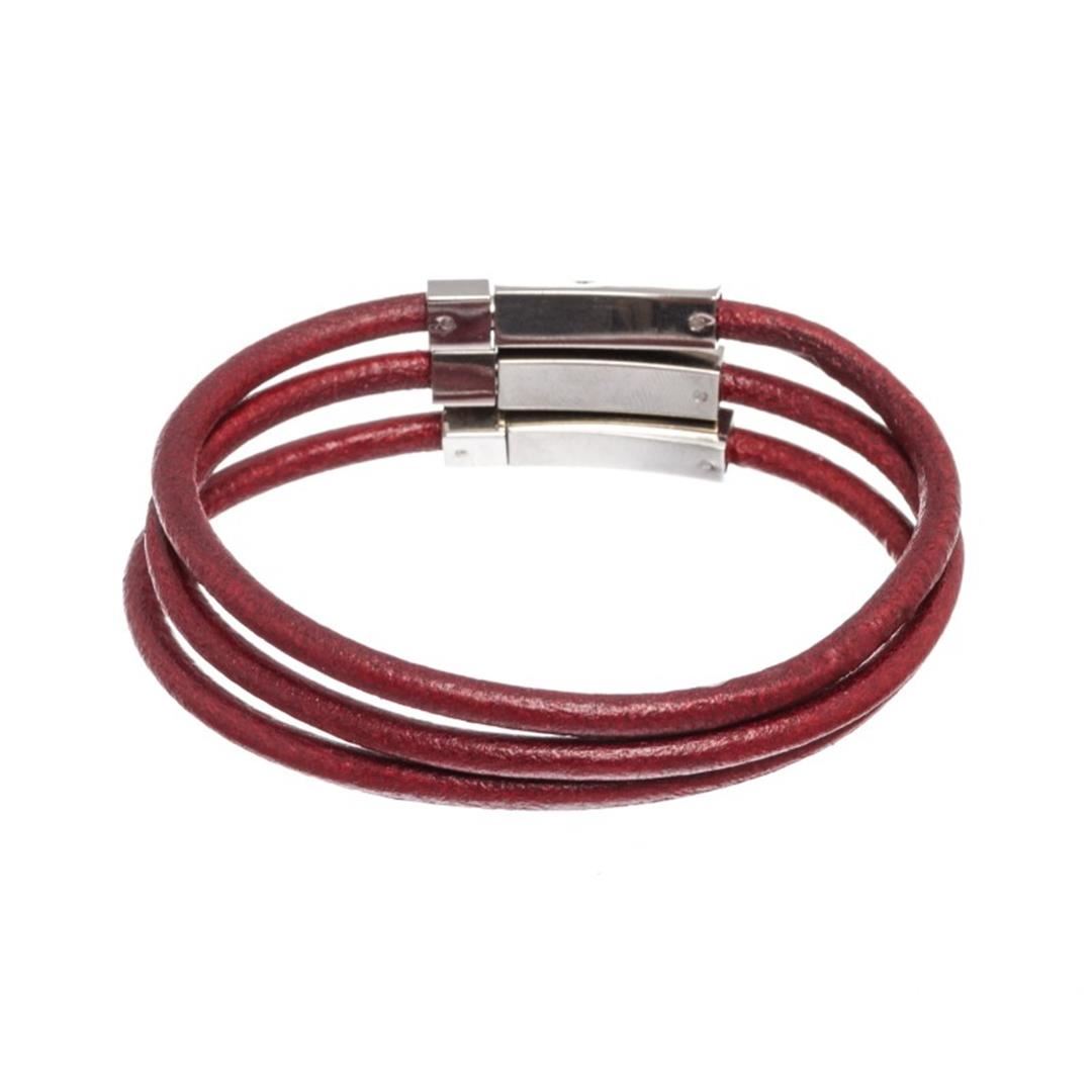 Crafted out of red leather and silver-tone hardware. Item is pre-owned. Item Dimensions: Length: 8.5"/21.59cm .