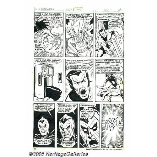 <B>Sal Buscema and Frank McLaughlin - The Defenders #6, page 18 Original Art (Marvel, 1973).</B></I> He thinks, therefore he is! When Prince Namor realizes that he has been land-locked without water far beyond his normal limit, he understands that his foe, Cyrus Black, doesn't really exist! There's nothing more satisfying than watching a villain disappear to nothing! From the Steve Englehart story, ""The Dreams of Death!,"" comes this page, which was penciled by Sal Buscema and inked by Frank McLaughlin. The art has an image area of 10"" x 15"", and, aside from some tape which extends into the image area, is in Excellent condition. <BR><BR><B>Important notice:</B> Heritage usually auctions material at the rate of 200-250 lots per hour. On some occasions eBay Live bid software or the Internet may not be able to keep up with the pace of the auction. We recommend placing a realistic absentee bid now as insurance to avoid disappointment. Occasionally the auctioneer may eliminate or reject an eBay Live bid, and the auctioneer may also reopen a lot after the close of the eBay live bidding (usually because we missed an audience bid), and may reject your bid even if it shows you as the winning bidder. By bidding via eBay Live, you agree that Heritage may award the lot to another bidder at its sole discretion under the circumstances described above or any other reasonable circumstances. Since eBay bids are not shown to us until we open the lot on the floor, we treat those bids just like floor bids. In most cases the floor responds before the eBay bid is presented to us, due to Internet lag time, so for consistency we have made it a policy that floor bids are always considered first over tie eBay live bids. Also please note that all Heritage lots purchased through eBay Live carry a 20% Buyer's Premium. Please make sure you read the Terms and Conditions before you bid. This lot is being auctioned in conjunction with a live floor auction by Heritage Galleries & Auctioneers. All