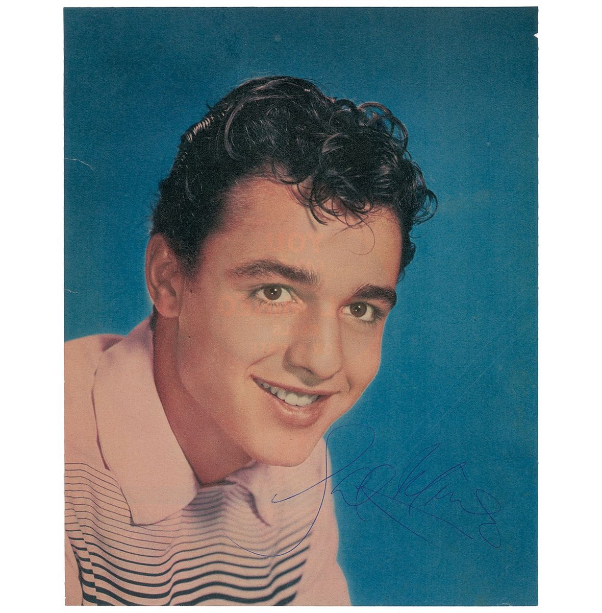 Color 8 x 10.5 magazine photo of the two-time Oscar nominee, signed in blue ballpoint. In fine condition, with two diagonal creases (passing through a single letter of the signature), and a few small edge tears.