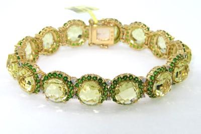 Brand New Salavetti 18K Yellow Gold Multi-color Stone And Diamond Bracelet ( Citrine & Tsavorite)