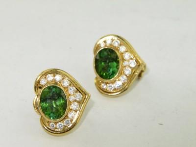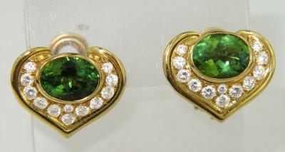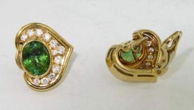 Salavetti 18K Yellow Gold Diamond & Tourmaline Earrings. The total earring's weight is 17.8 grams. The total weight of diamond: 1.2 cts.,approximately. H color VS clarity. Total size of Tourmaline: 9 x 6 mm. The measurement of earring: 19 x 14 mm and 5 mm in thickness.