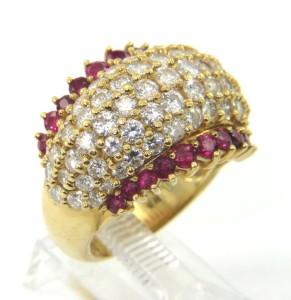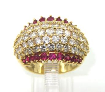 Salavetti 18K Yellow Gold Ruby & Diamond Ring. The total ring's weight is 13.7 grams. The total diamond weight is 4 cts,approxmiately. G color, VS clarity. The weight of Ruby is 0.66 cts, approximately. The dimensions of the ring's face 22 x 15 mm. The size of the ring is 5.5