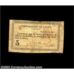 Salem, NC- Corporation of Salem 5¢ Nov. 29, 1814An enigmatic early Salem issue which is either a mun